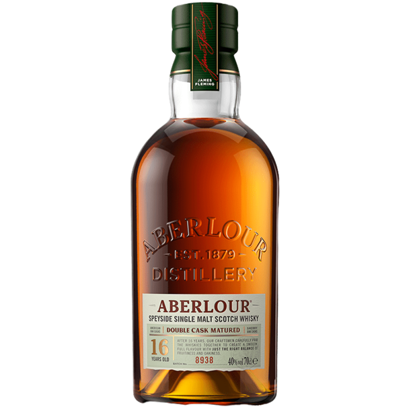 16 letni Aberlour już od pierwszych chwil zachwyca przepiękną bursztynową barwą ze złotymi refleksami. Bogaty aromat obfituje w kwiatowe nuty ze słodkim akcentem rodzynek, okraszonych subtelną pikantnością gałki muszkatołowej. W smaku gładka, słodka, kwiatowa z lekko pikantnymi nutami. Finish długi, pełny rozgrzewających przypraw i owocowych smaków.