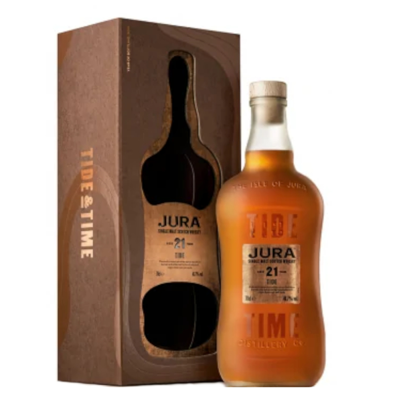 Kilka mil od zachodniego wybrzeża Szkocji znajduje się wyspa Jura ? odległa, czasem dzika, ale zawsze piękna. Jest to dom dla 212 wyspiarzy, gdzie jedna droga, jeden pub, jedna destylarnia tworzą wyjątkową społeczność zakochaną w jednym trunku. Od 1810 roku wytwarzana z sercem i pasją do whisky. Dzikość wyspy sprawia, że na Jurze łatwo stracić poczucie czasu, lecz jeśli zatracisz się na chwilę w ciszy, dostrzeżesz rytm przypływów, przywracający czasowi jego bieg. Tak samo jak whisky, która nieodparcie przypomina nam o sile czasu. Dojrzewająca 21 lat w beczkach po bourbonie, wykonanych z białego dębu amerykańskiego, wspaniale wzbogacona leżakowaniem w dziewiczych beczkach, którym zawdzięcza słodki i dymny, owocowo ? orzechowy smak.