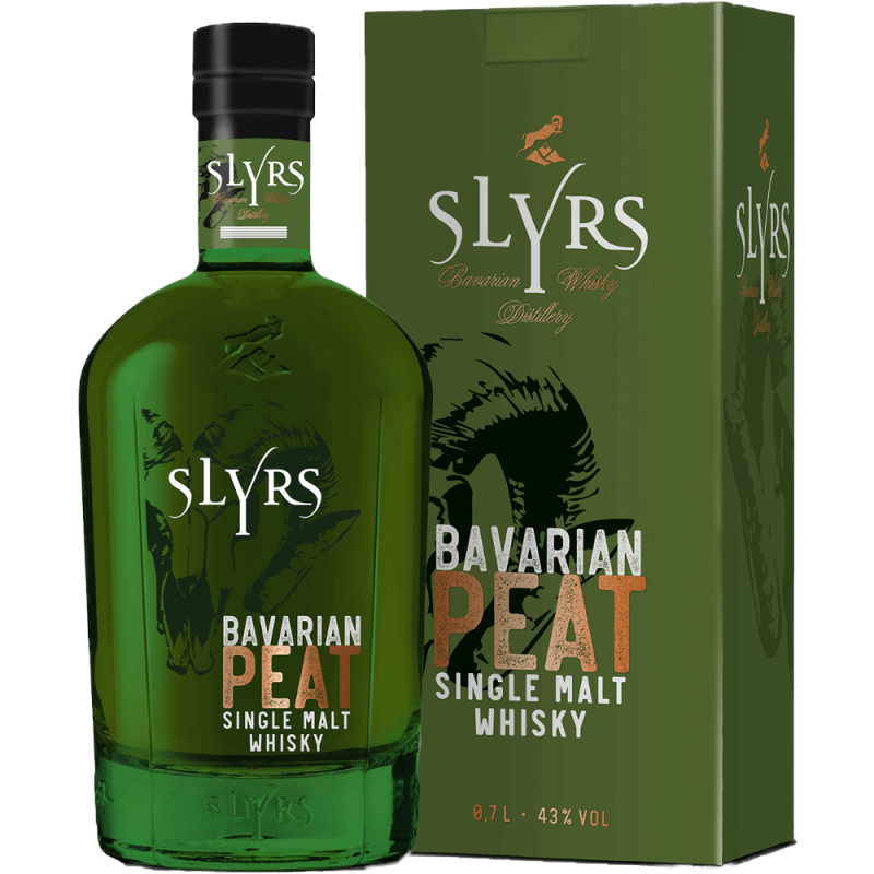 z Górnej Bawarii. Slyrs Bavarian Peat to torfowa whisky single malt z destylarni Schliersee, dla której słód jęczmienny z Niemiec został wypalony na torfie, który również pochodzi z Bawarii. Single malt jest butelkowany w ilości 40 ppm. W zielonej butelce można zobaczyć naszkicowaną głowę barana.