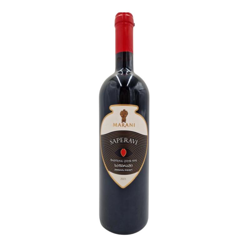 Marani Saperavi Qvevri to czerwone wytrawne wino gruzińskie, o bogatym smaku i aromacie, wyprodukowane tradycyjną metodą w amforach qvevri. Zawiera 14% alkoholu i doskonale komponuje się z mięsami oraz serami.
