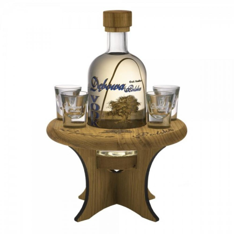Rewelacyjna delikatność smaku wynika z unikatowej receptury, w której nie ma miejsca na sztuczne składniki - wręcz przeciwnie, do produkcji wódki Dębowa Polska wykorzystywane są wyłącznie naturalne nalewy z wyselekcjonowanych roślin. Wódka wyprodukowana z najlepszego polskiego spirytusu zbożowego. Specjalnie uzdatniona, krystaliczna woda oraz nalewy wyekstrahowane ze specjalnie wybranych roślin nadają jej charakterystyczny, delikatny smak doceniany przez najlepszych koneserów.W każdej butelce umieszczony jest skrawek dębowego drzewa, który nadaje wódce ten niepowtarzalny aromat i kolor. Umieszczona w oryginalnym dębowym stoliku. Całość dopełniają 4 kieliszki.