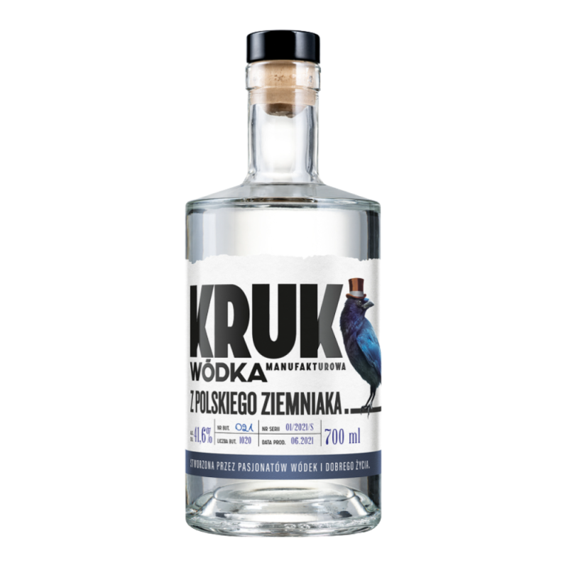 Prosty, męski kształt butelki ze szkła najwyższej próby. A Kruk? Jest autentyczny jak historia i miejsce powstania tej wódki.