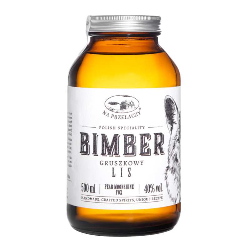 Na Przelaczy Bimber Lis gruszkowy 40 % vol. to wódka smakowa nawiązująca do tego pięknego miejsca jakim jest Przelacz, oddająca prawdziwy charakter tradycyjnego polskiego bimbru. Charakteryzuje się zbalansowanym, delikatnie słodkim smakiem i aromatem, z wyraźną nutą dojrzałych gruszek. Produkt wytwarzany z naturalnych składników. Podawać schłodzony.