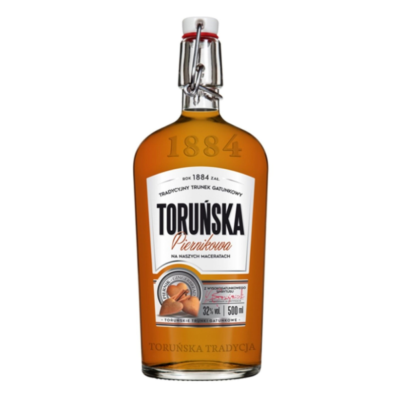 Wódka Toruńska Piernikowa 32% to unikalny trunek, który łączy w sobie tradycję toruńskich pierników z doskonałością polskiego gorzelnictwa. Ta wódka smakowa, produkowana w Polsce, zachwyca słodkim i korzennym smakiem piernika, który przeniesie Cię w magiczny świat toruńskich cukierni. Idealna do picia w czystej postaci, schłodzona, lub jako niezwykły dodatek do koktajli, dodając im wyjątkowego charakteru. Wódka Toruńska Piernikowa to doskonały wybór na świąteczne spotkania, zimowe wieczory i specjalne okazje, oferując niezapomniane doznania smakowe.